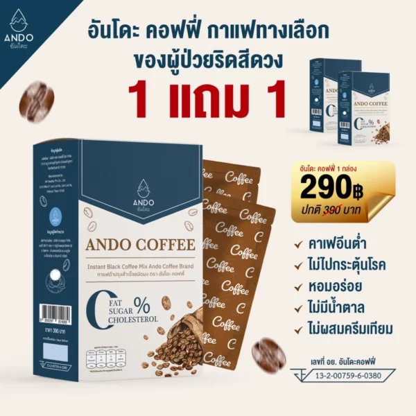 อันโดะคอฟฟี่กาแฟดำทางเลือกใหม่สำหรับผู้เป็นริดสีดวงที่เลี่ยงกาแฟไม่ได้ ไม่มีน้ำตาล ไม่มีครีมเทียมสินค้า จัดส่งฟรี 1กล่อง
