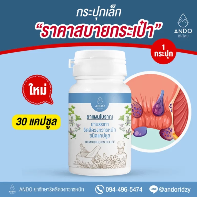 ยารักษาริดสีดวงอันโดะ หายขาดได้ ไม่ต้องผ่า รักษาที่ต้นเหตุได้ทุกระยะ 1 กระปุก 30 แคปซูล มีทะเบียนยา พร้อมส่ง